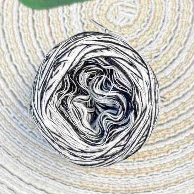 Deze garencake is verkrijgbaar vanaf 100 meter tot aan 1000 meter! Perfect voor als je kleine stukjes haak of breiwerk een extra touch wilt geven of een complete sjaal wilt maken. Het garen van Spooky bestaat uit 3 kleuren die wel een ‘verloop’ hebben. De draden van de zwarte en witte stukken verspringt per draad. Zo krijg je een grappig gemengde bol. Daartussen zit een zilverdraadje voor een extra spookachtig effect.