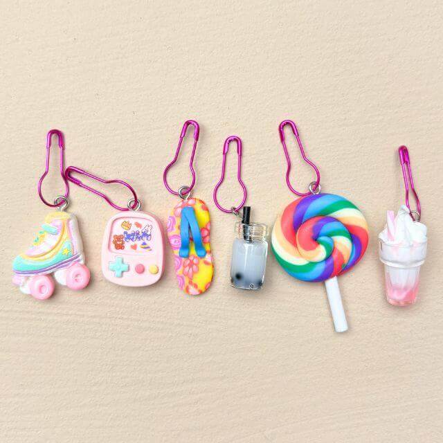In de set vind je zes zomerse bedeltjes: een vrolijke lolly, een verfrissende sorbet, een zomers drinkglas, luchtige slippers, een schattige rolschaats én een nostalgisch spelcomputertje. Perfect voor handwerkers die houden van een speelse stijl en een beetje jeugdsentiment!